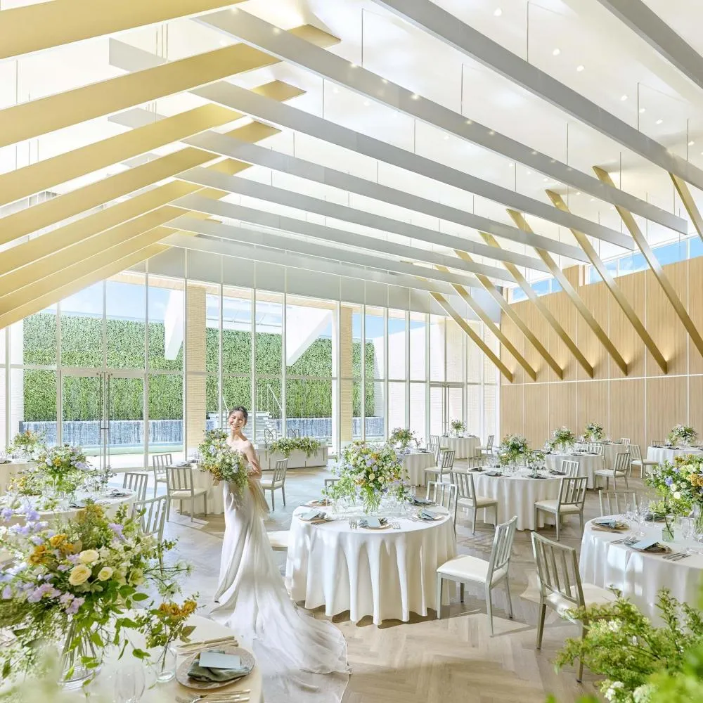 【天井高9.6Mから自然光が降り注ぐ全天候型チャペル】最大120名様着席可能!圧巻のスケールを誇るチャペルは好立地とは思えない、空だけが見える特別な空間そのもの。ゲストの皆様の記憶に残る特別な瞬間を♪