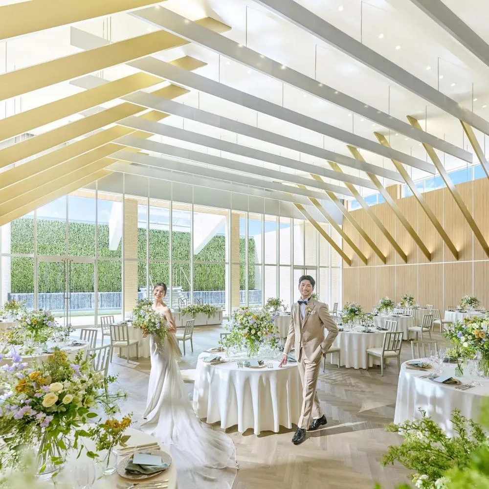 全天候型テラス付き!木目調の優しさと自然光が包み込む暖かい会場「SHINE」花嫁憧れ“階段入場”が叶う!開放感溢れる白を貴重とした「PRISM」オリジナルマッピングはゲストにも一生記憶に残る瞬間★